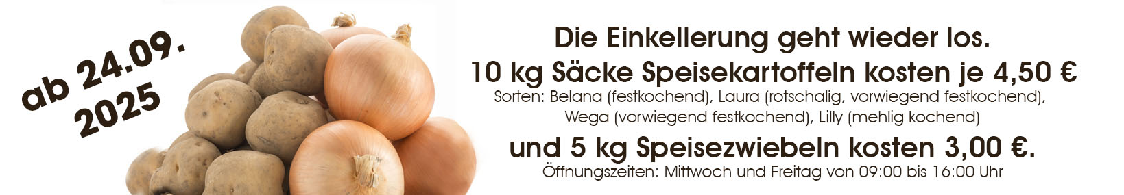 Das ganze Jahr über können Sie bei uns Ihre Tiere mit Kartoffeln und abgesacktem Futter (z.Bsp. Legehennenvollkorn pelletiert und mehlig) versorgen. Futterkartoffeln können Sie sich selbst einsacken oder auf einem mitgebrachten Anhänger aufschütten lassen.
